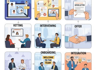 We handle sourcing, vetting, salary negotiation, and onboarding to simplify the recruitment process.